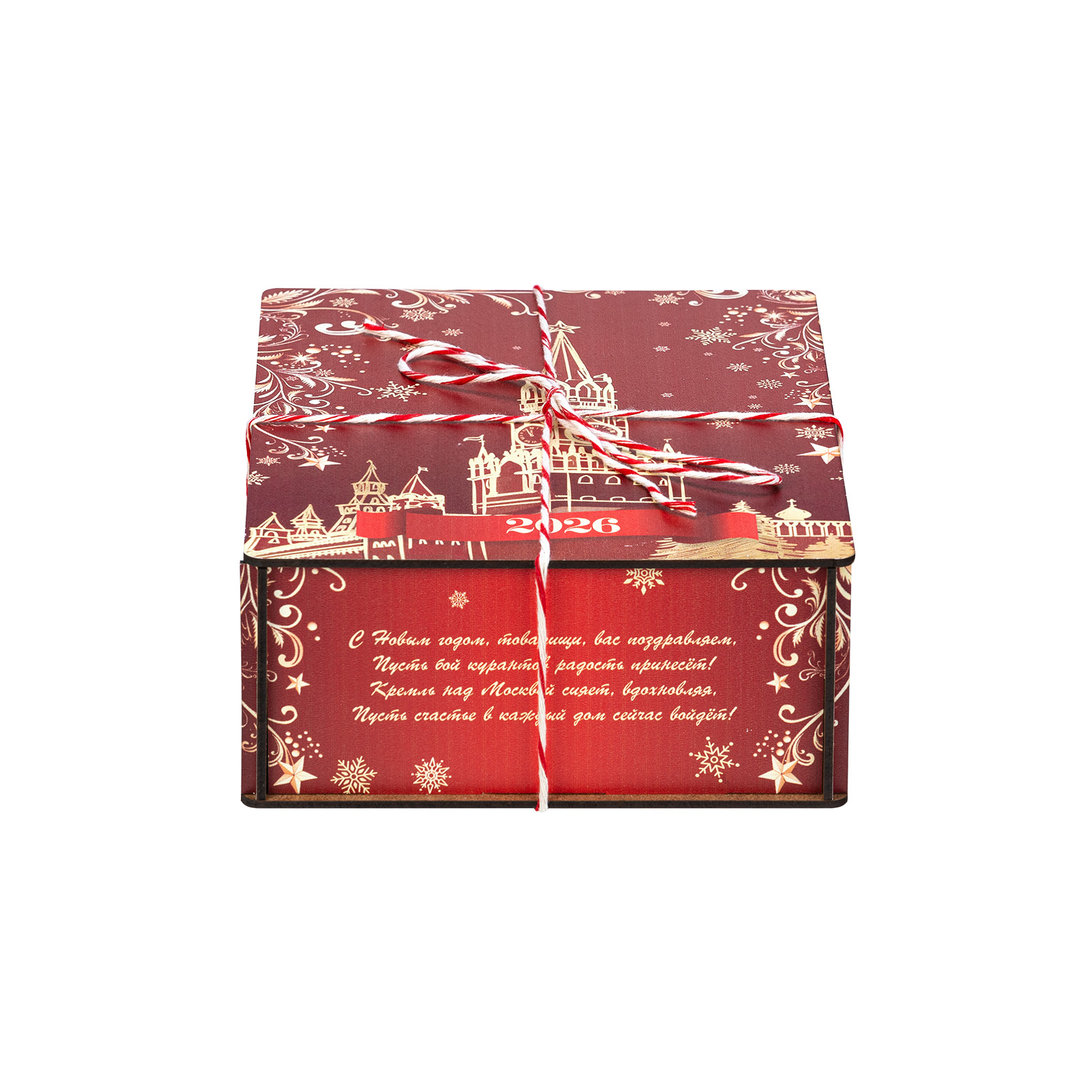 Ищете новогодний сладкий подарок коллеге, педагогу или руководителю? Обратите внимание на подарочный набор “Кремль”, который идеально сочетает в себе солидную красочную упаковку и превосходный вкус кондитерских изделий Подарочная упаковка выполнена из качественного дерева и окрашена в разные оттенки красного цвета. Со всех сторон можно увидеть контрастные узоры и поздравительные надписи, а на крышке изображен один из самых узнаваемых новогодних символов - Кремлевские куранты. В состав подарка входит килограмм разнообразных кондитерских изделий от ведущих кондитерских предприятий и небольшой памятный сувенир в виде символа наступающего года. Такой прекрасный подарок сделает любое новогоднее торжество незабываемым.