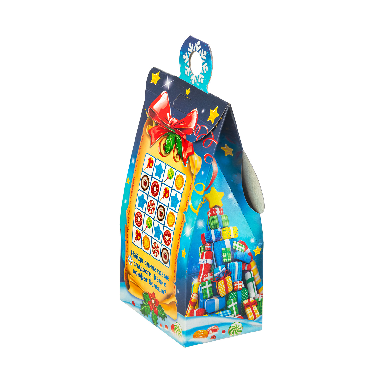 Этот небольшой подарочный набор в красочной картонной упаковке - самая настоящая находка! Упаковка выполнена в виде небольшой сумочки, украшенной яркой новогодней иллюстрацией. Спереди мы видим неутомимую игривую лошадку, которая прискакала из своей волшебной страны и привезла с собой множество угощений для своих друзей. В состав подарка входит 400 грамм отборных сладостей, которые порадуют абсолютно любого ребенка. Этот подарочный набор идеально подойдет для новогоднего мероприятия в начальной школе или детском саду.